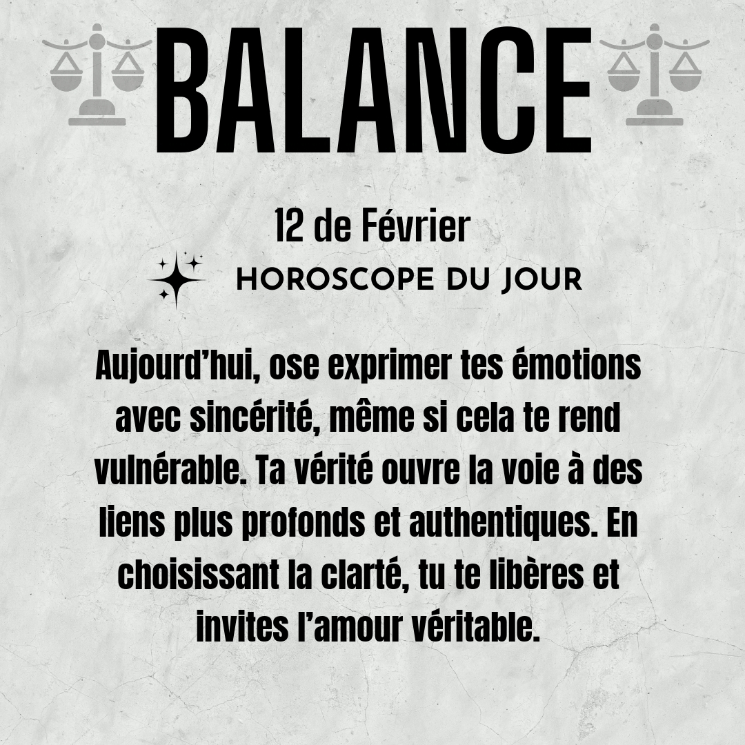 ♎ Balance aujourd'hui Jeudi 12 du Février