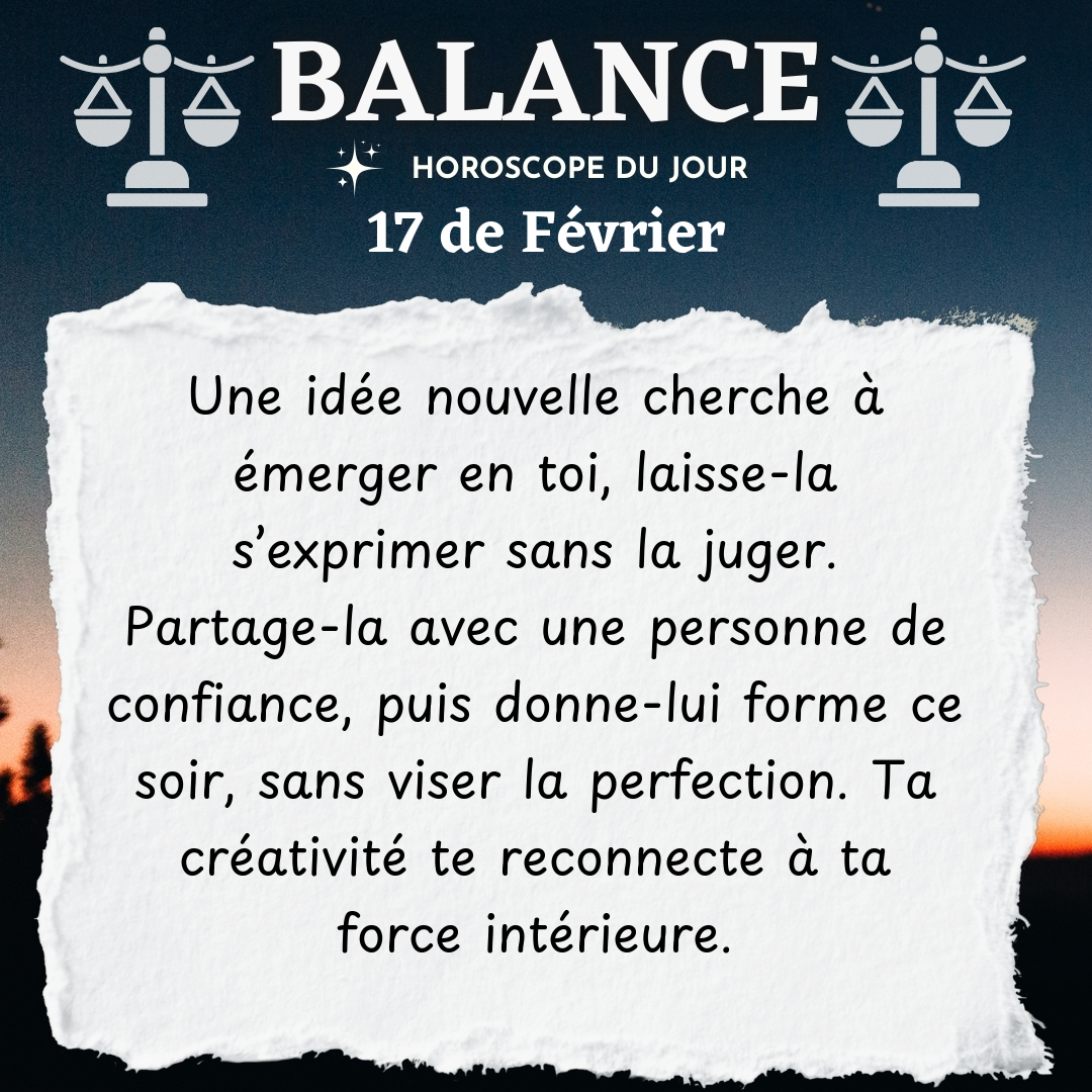 ♎ Balance aujourd'hui Mardi 17 du Février