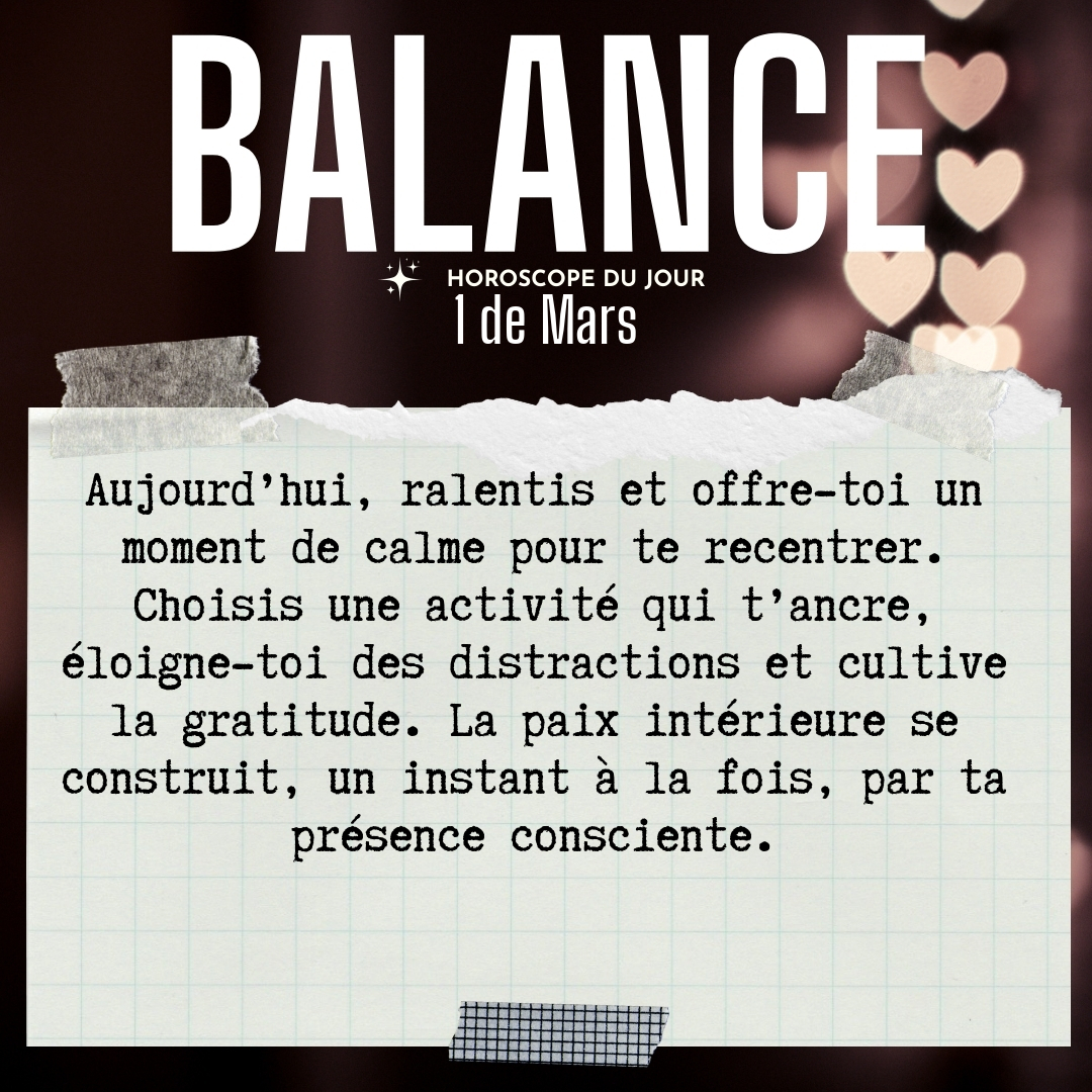 ♎ Balance aujourd'hui Dimanche 1 du Mars