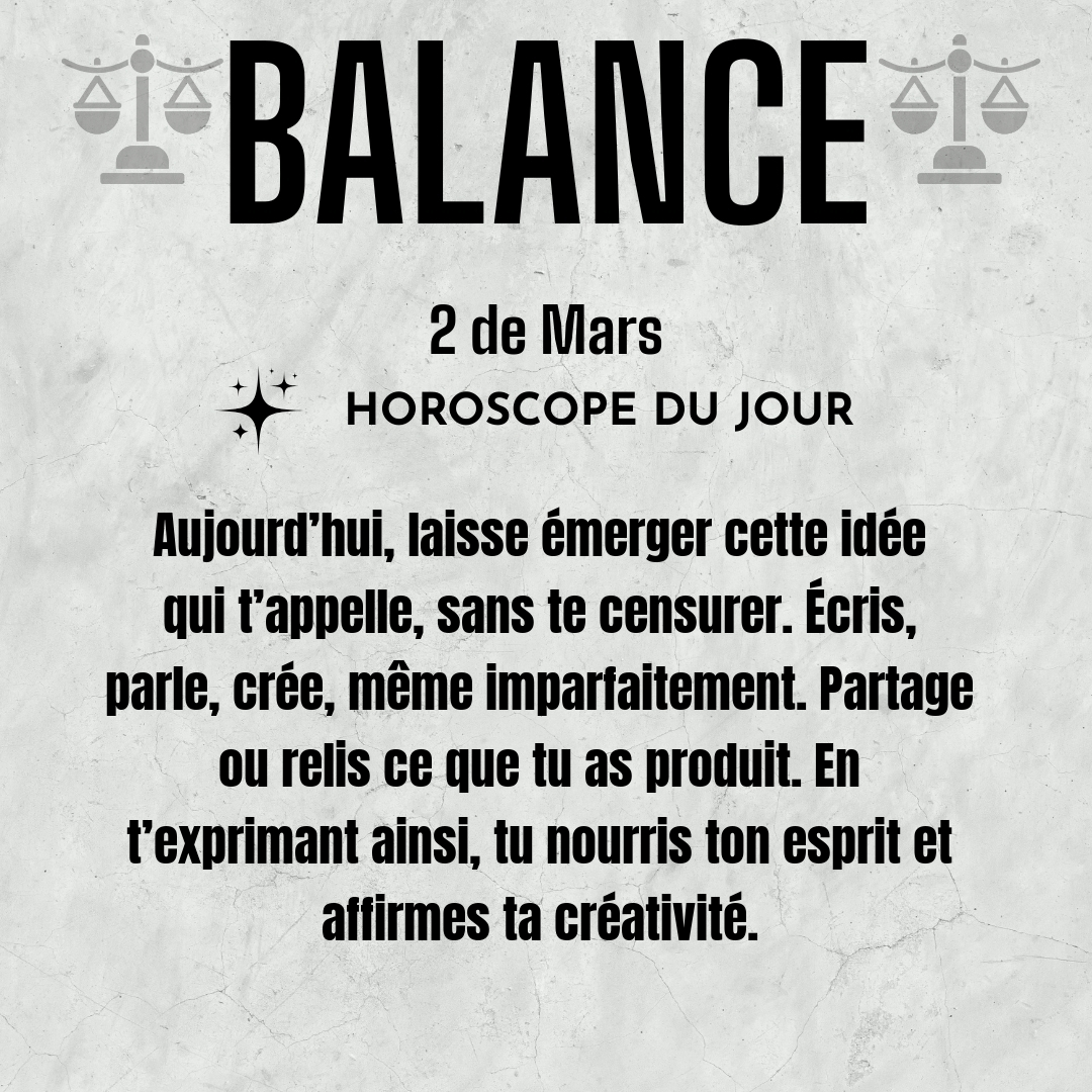 ♎ Balance aujourd'hui Lundi 2 du Mars