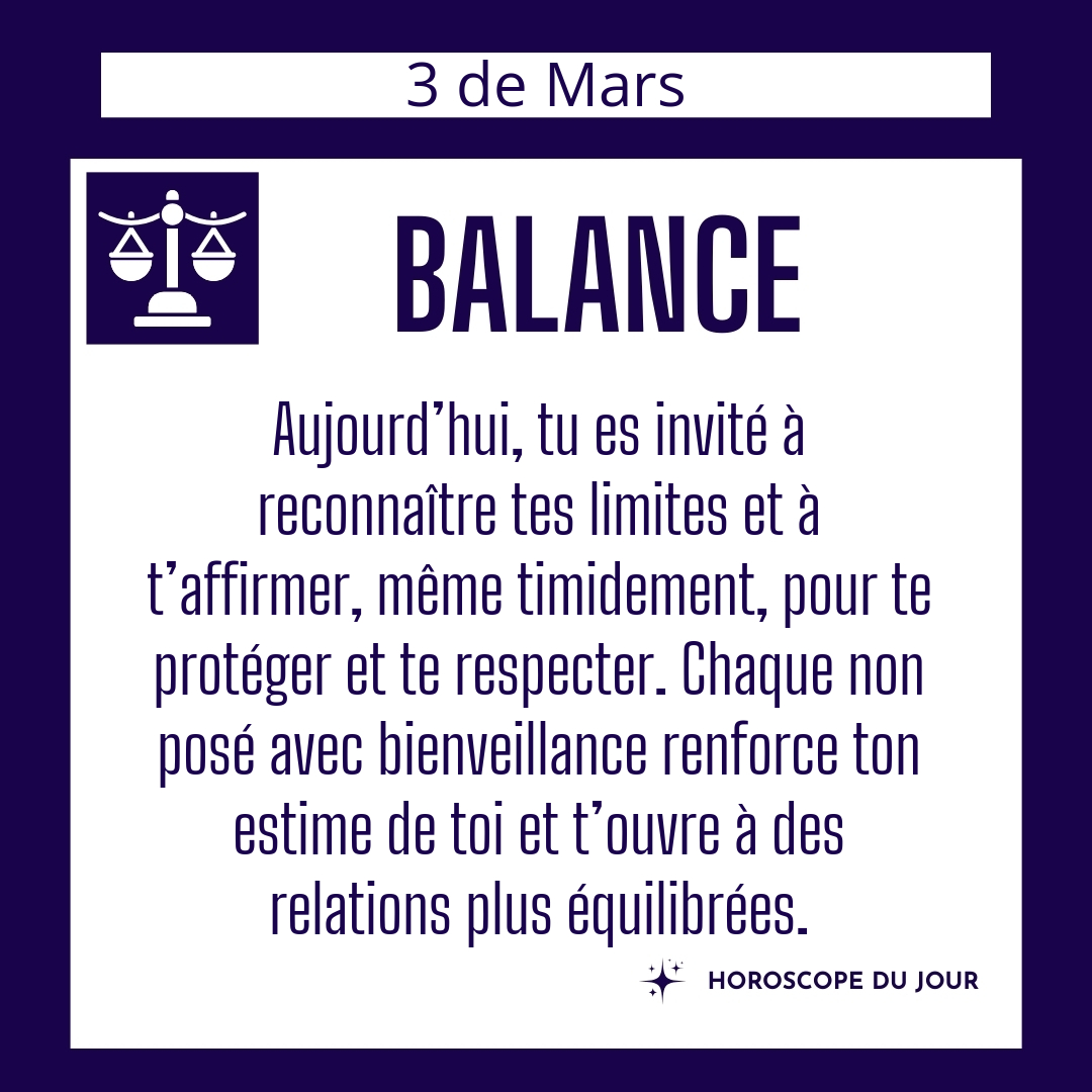 ♎ Balance aujourd'hui Mardi 3 du Mars