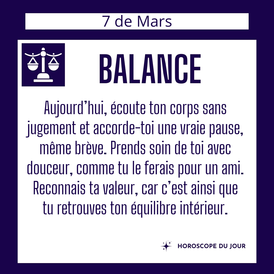 ♎ Balance aujourd'hui Samedi 7 du Mars