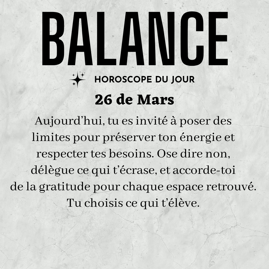 ♎ Balance aujourd'hui Jeudi 26 du Mars