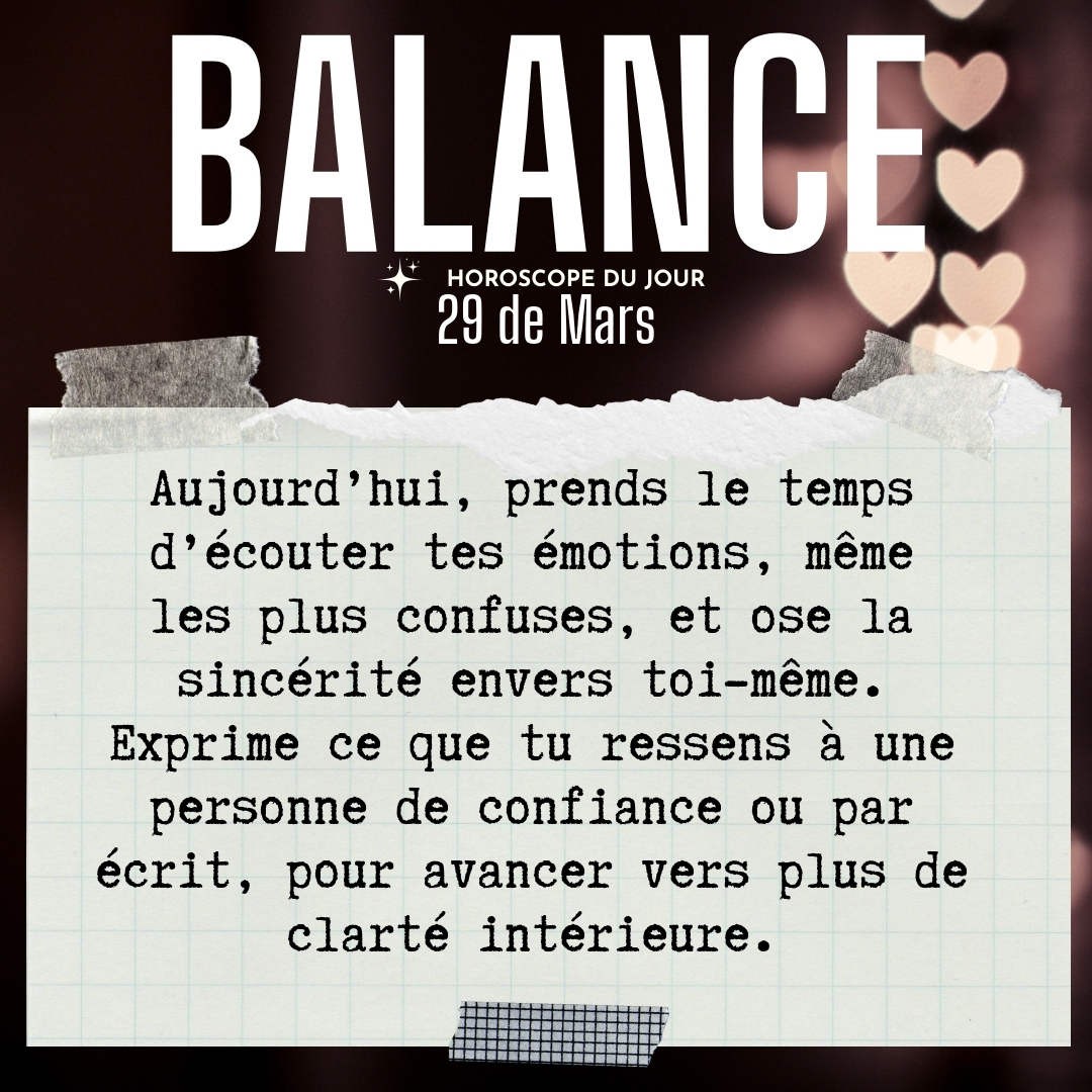 ♎ Balance aujourd'hui Dimanche 29 du Mars