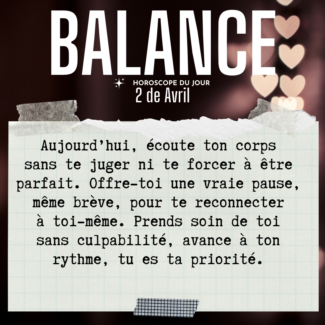 ♎ Balance aujourd'hui Jeudi 2 Avril