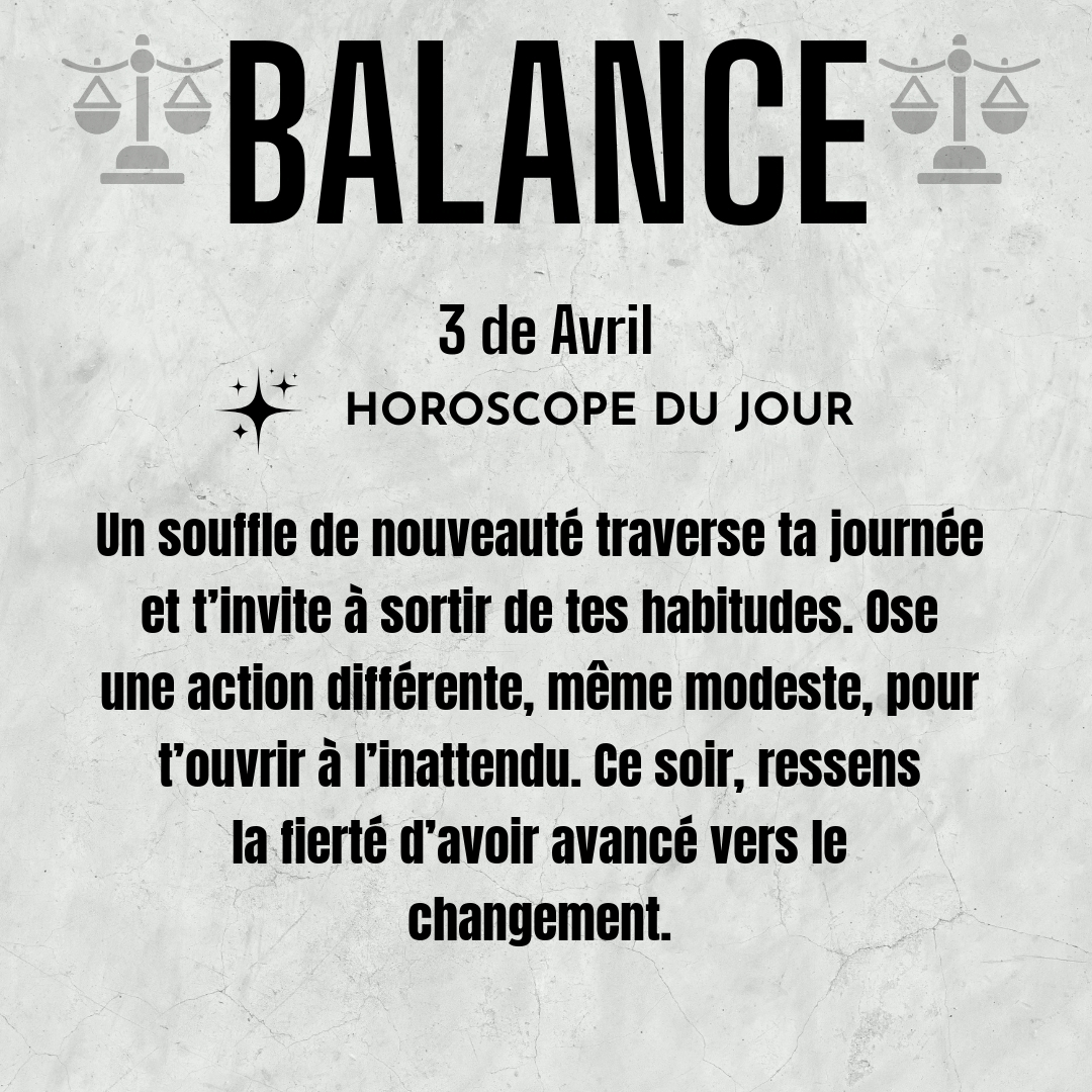 ♎ Balance aujourd'hui Vendredi 3 Avril