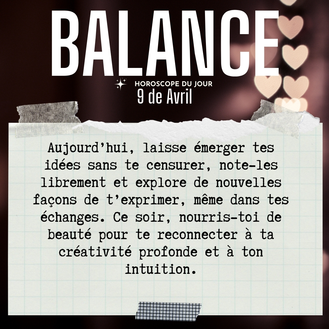 ♎ Balance aujourd'hui Jeudi 9 Avril