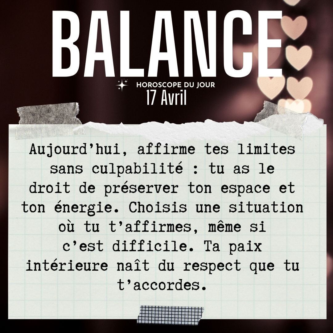 ♎ Balance aujourd'hui Vendredi 17 Avril