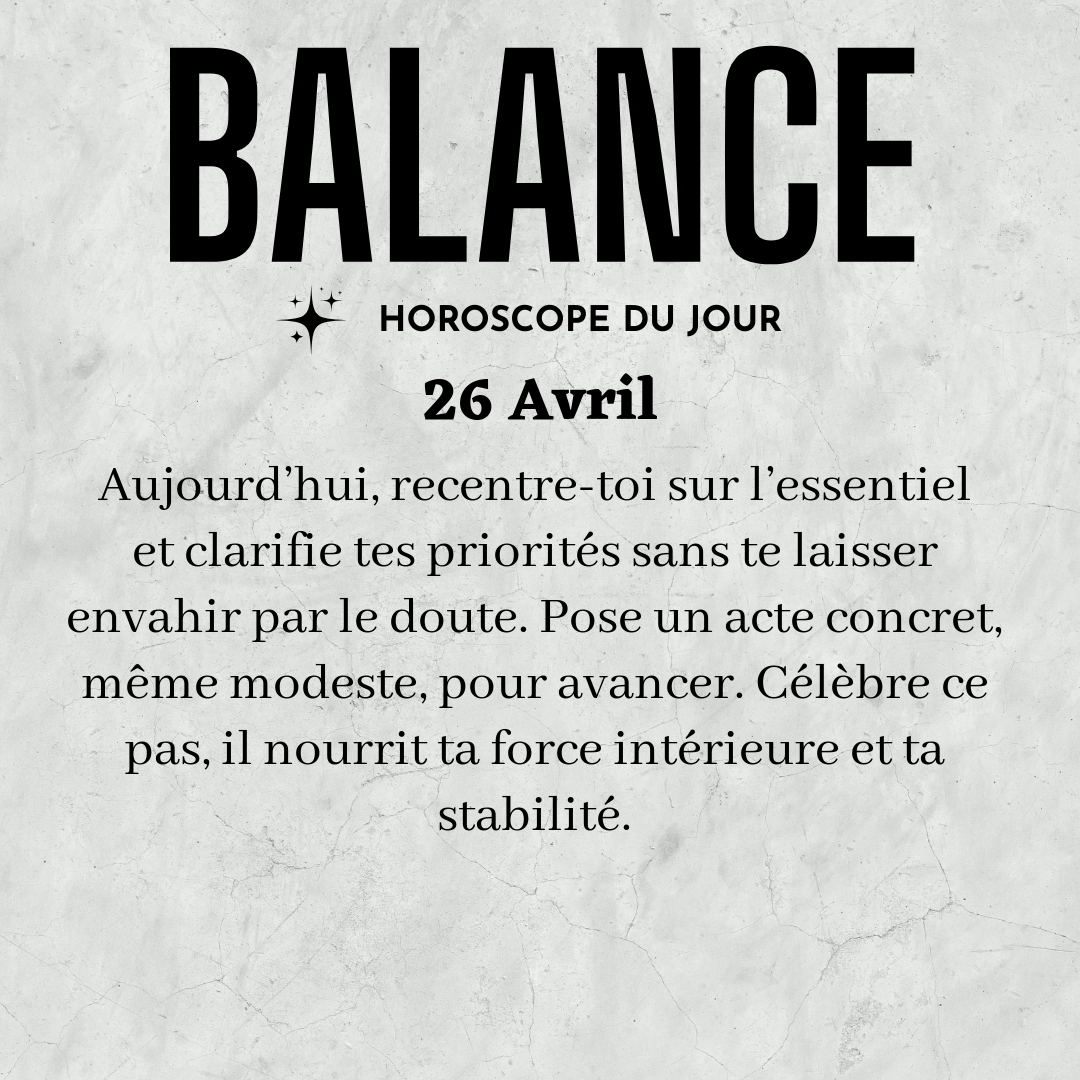 ♎ Balance aujourd'hui Dimanche 26 Avril