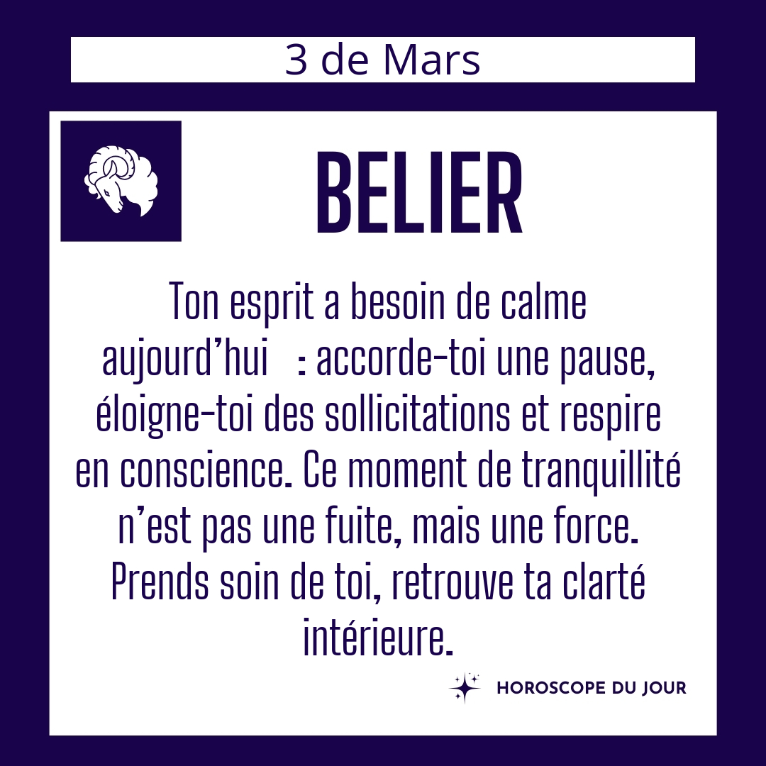 ♈ Bélier aujourd'hui Mardi 3 du Mars