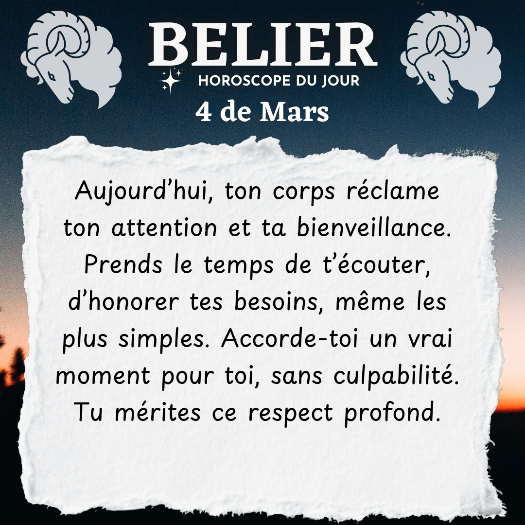 ♈ Bélier aujourd'hui Mercredi 4 du Mars