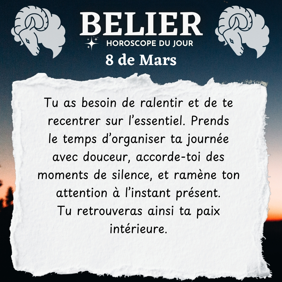 ♈ Bélier aujourd'hui Dimanche 8 du Mars