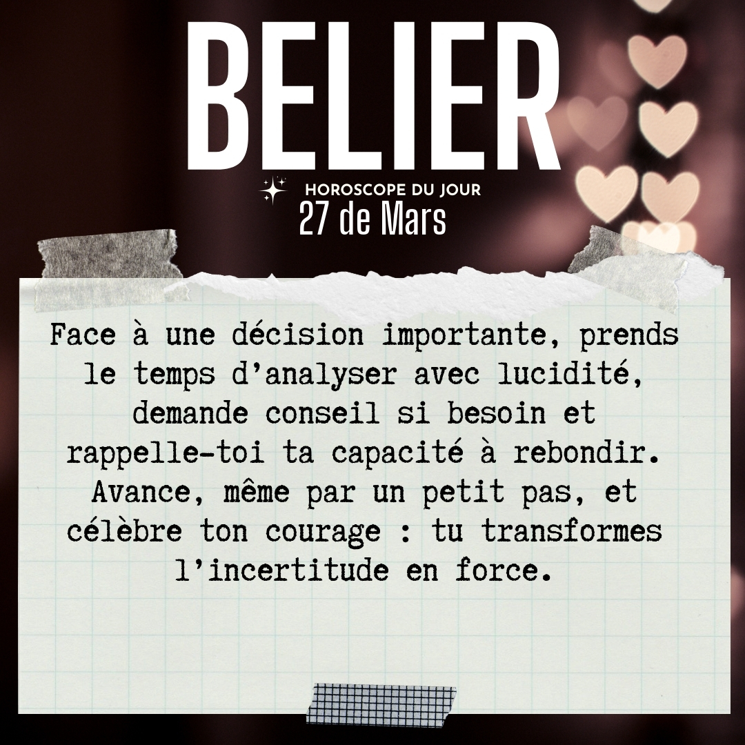 ♈ Bélier aujourd'hui Vendredi 27 du Mars