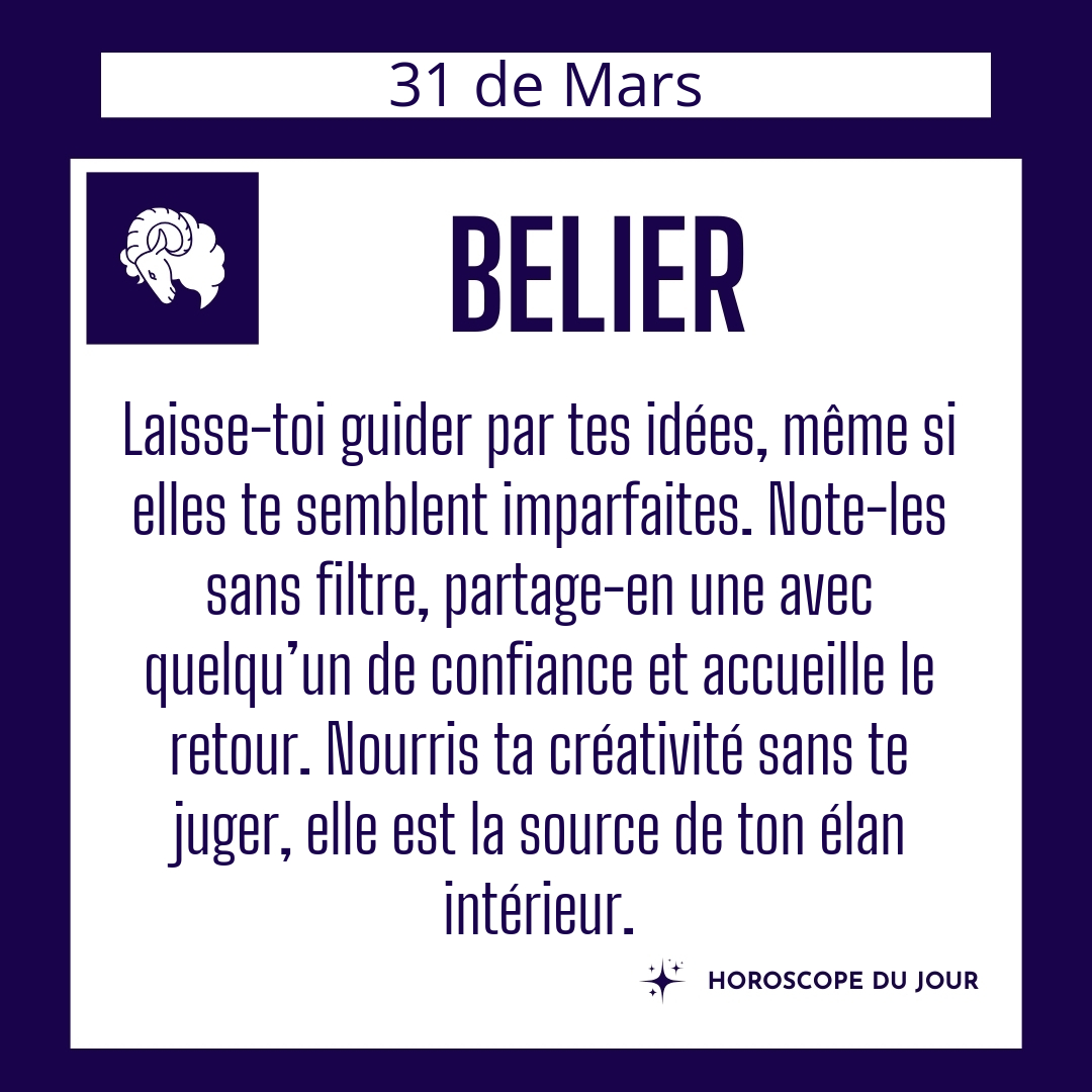 ♈ Bélier aujourd'hui Mardi 31 du Mars