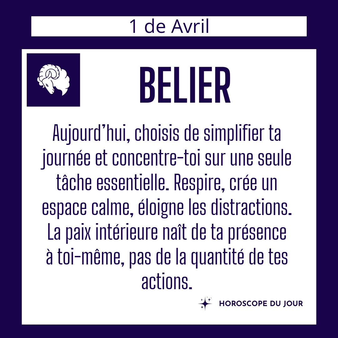 ♈ Bélier aujourd'hui Mercredi 1er Avril