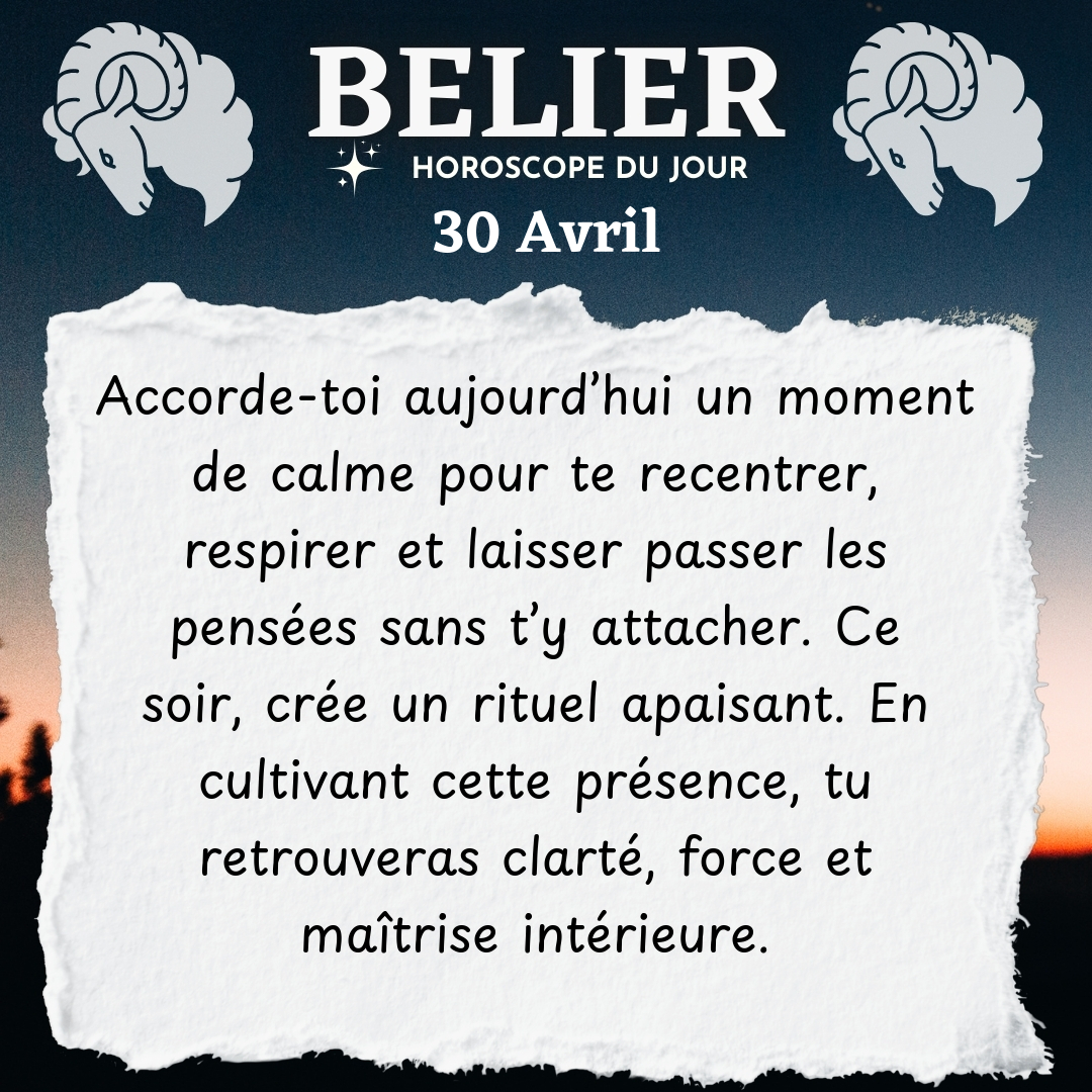 ♈ Bélier aujourd'hui Jeudi 30 Avril