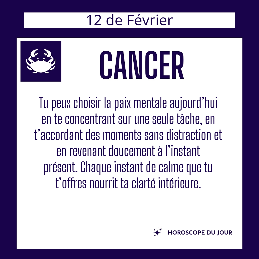 ♋ Cancer aujourd'hui Jeudi 12 du Février