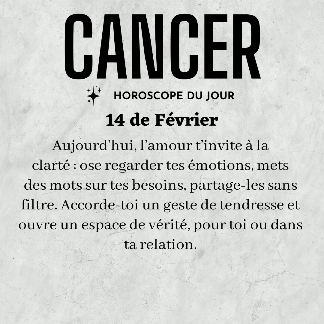 ♋ Cancer aujourd'hui Samedi 14 du Février