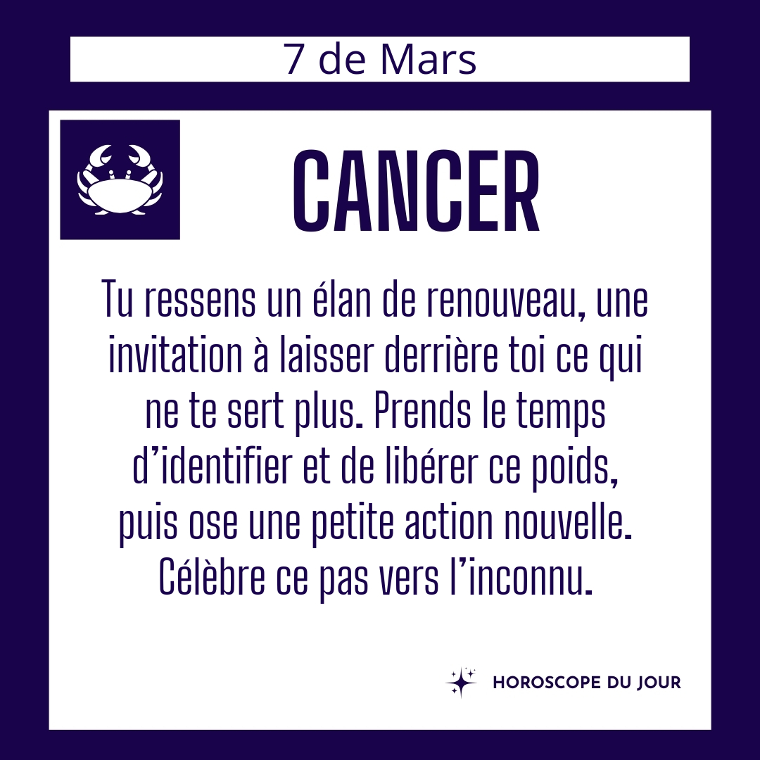 ♋ Cancer aujourd'hui Samedi 7 du Mars