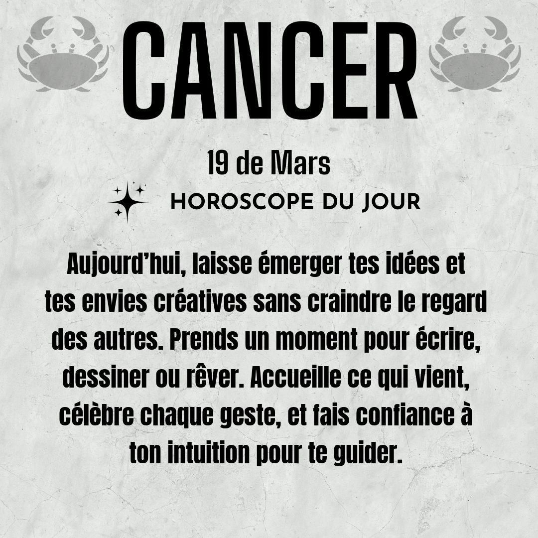 ♋ Cancer aujourd'hui Jeudi 19 du Mars