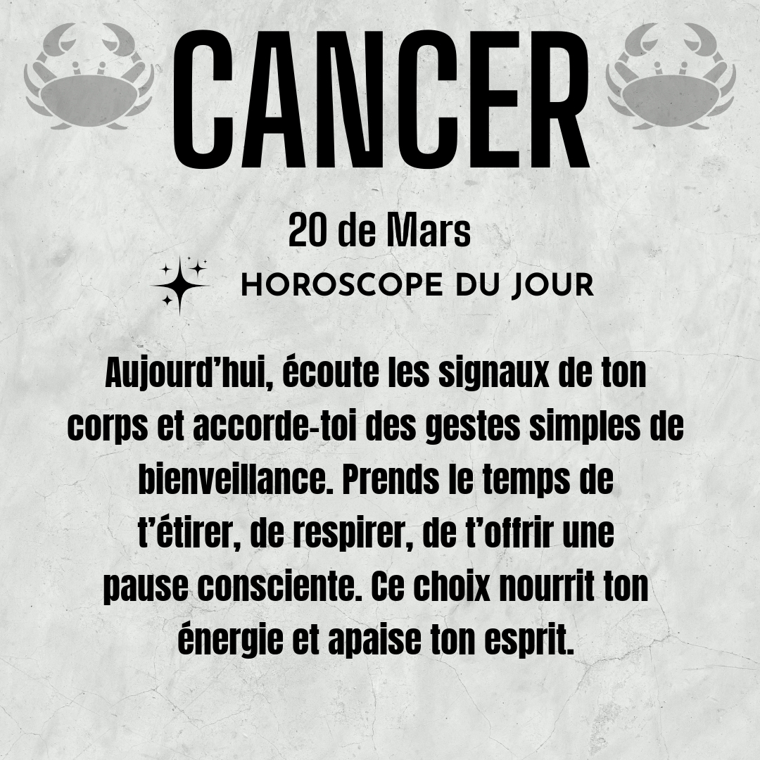 ♋ Cancer aujourd'hui Vendredi 20 du Mars
