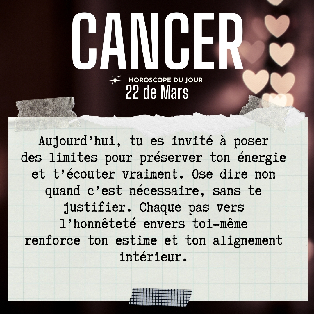 ♋ Cancer aujourd'hui Dimanche 22 du Mars