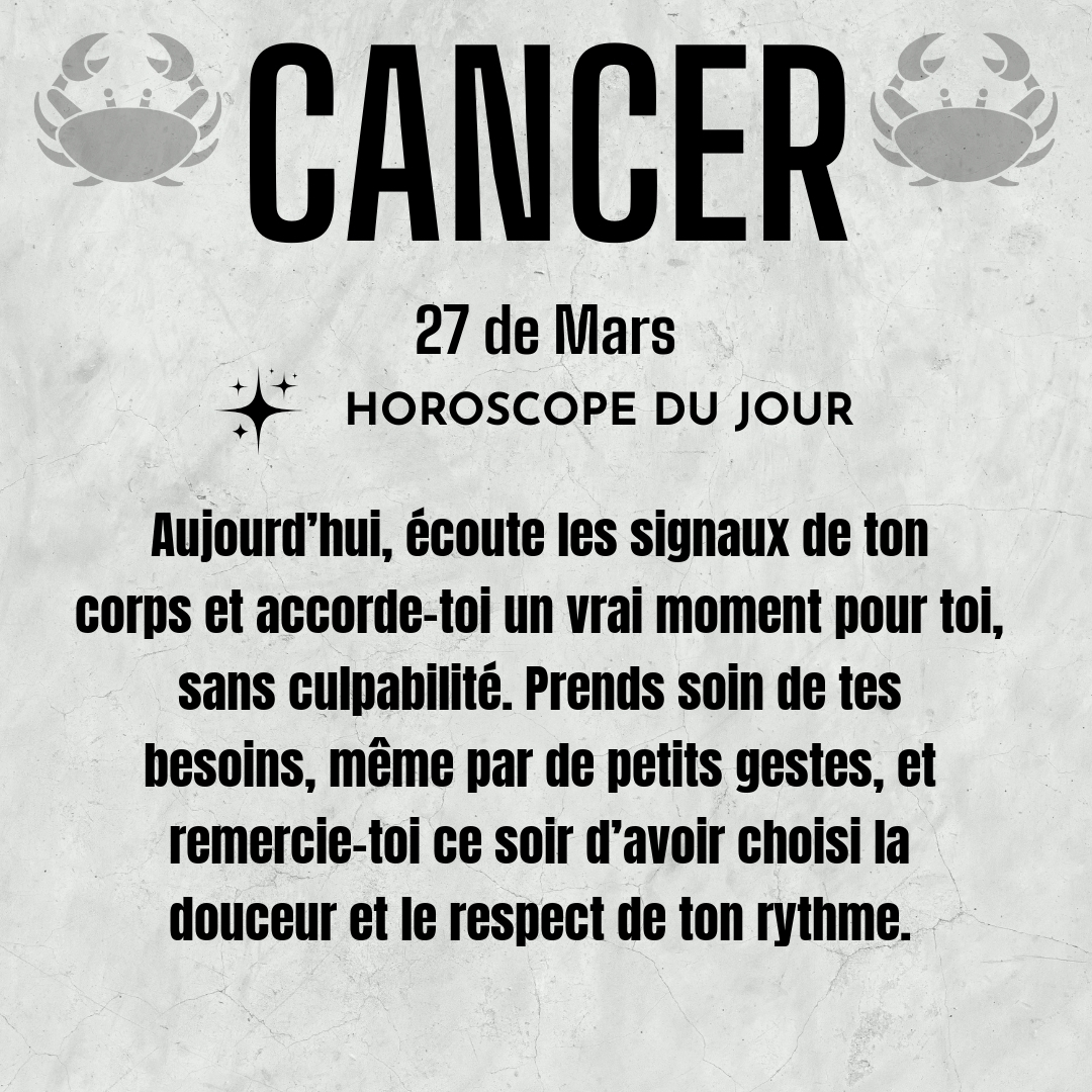 ♋ Cancer aujourd'hui Vendredi 27 du Mars