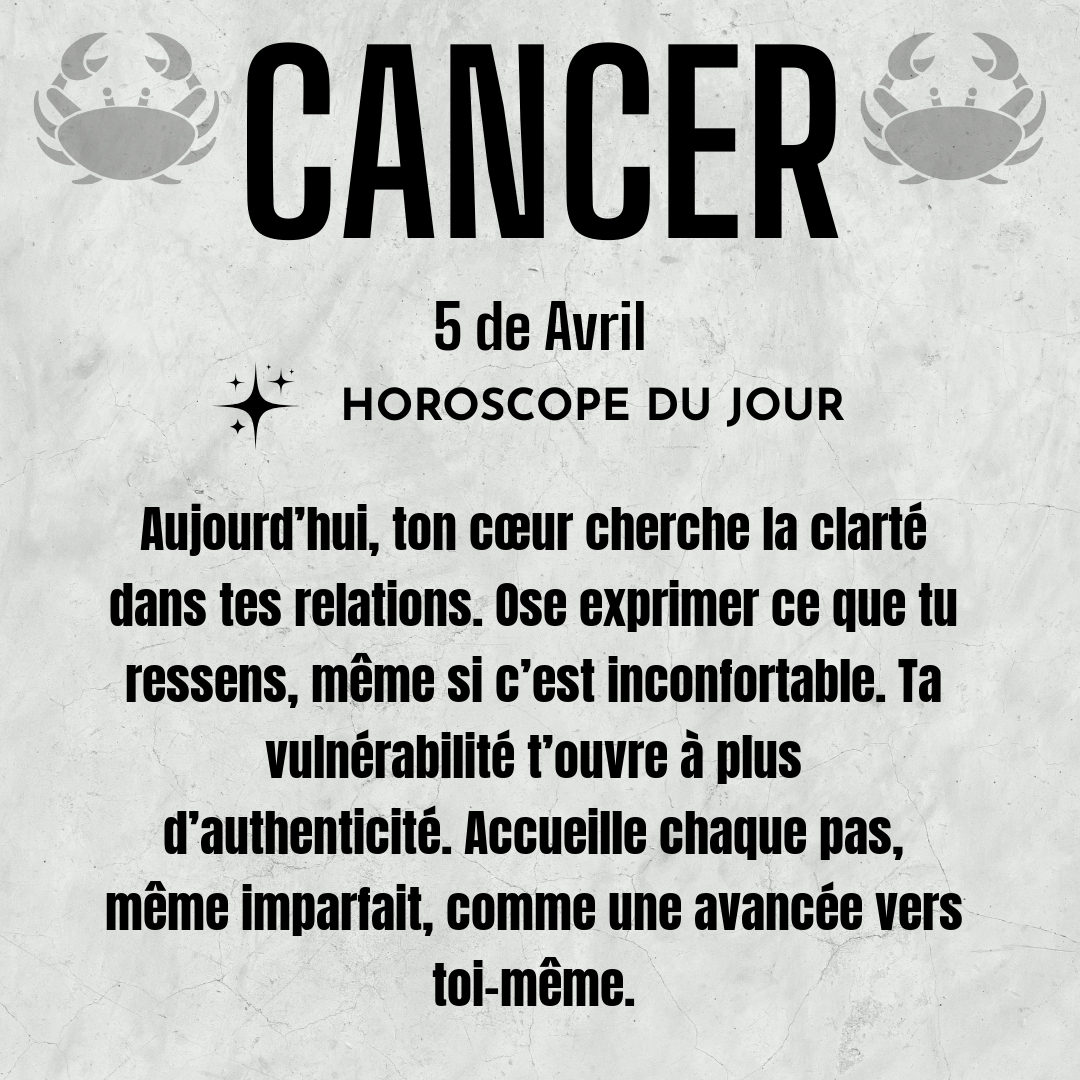 ♋ Cancer aujourd'hui Dimanche 5 Avril