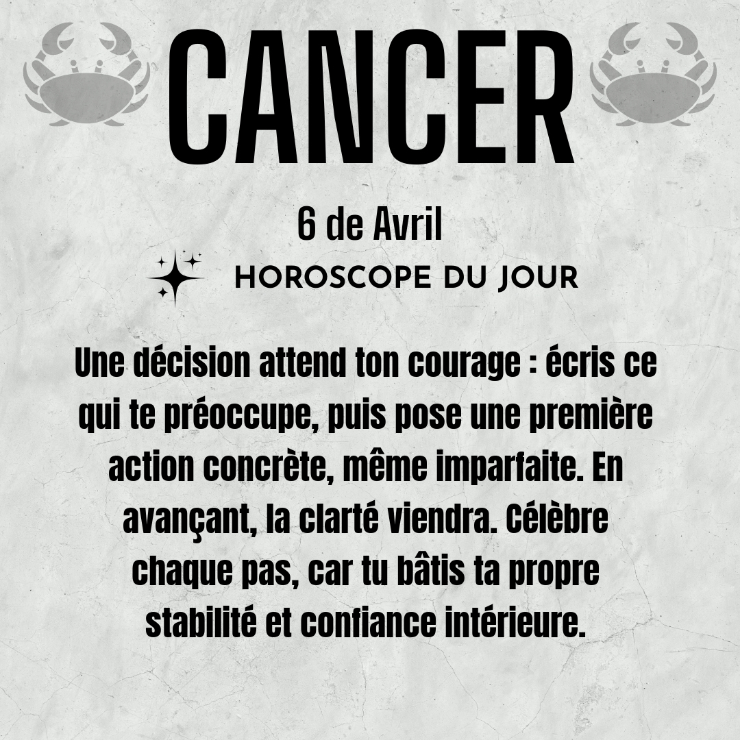 ♋ Cancer aujourd'hui Lundi 6 Avril