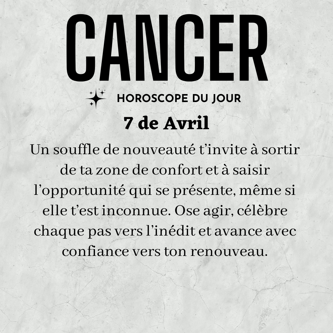 ♋ Cancer aujourd'hui Mardi 7 Avril
