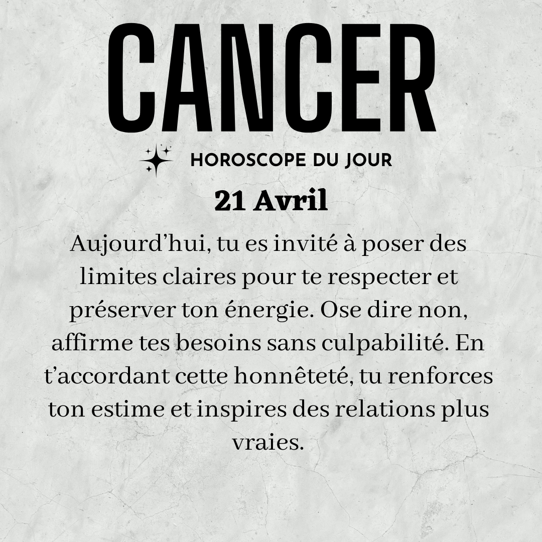 ♋ Cancer aujourd'hui Mardi 21 Avril
