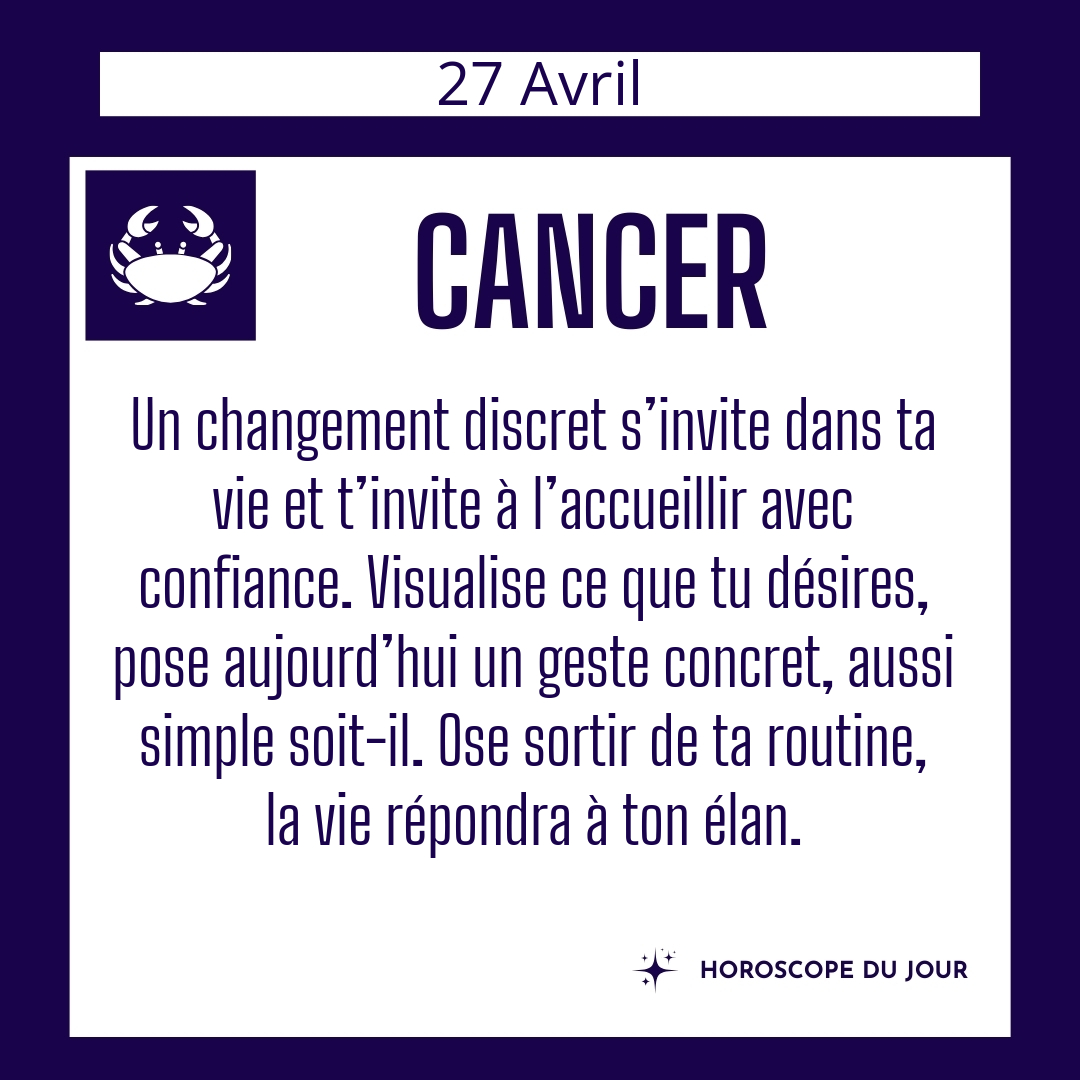 ♋ Cancer aujourd'hui Lundi 27 Avril