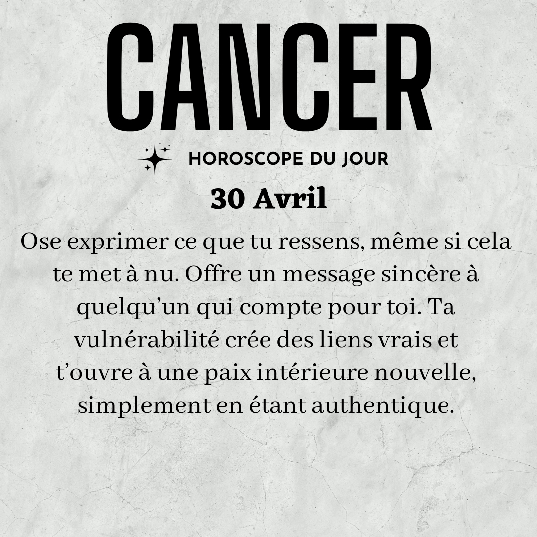 ♋ Cancer aujourd'hui Jeudi 30 Avril