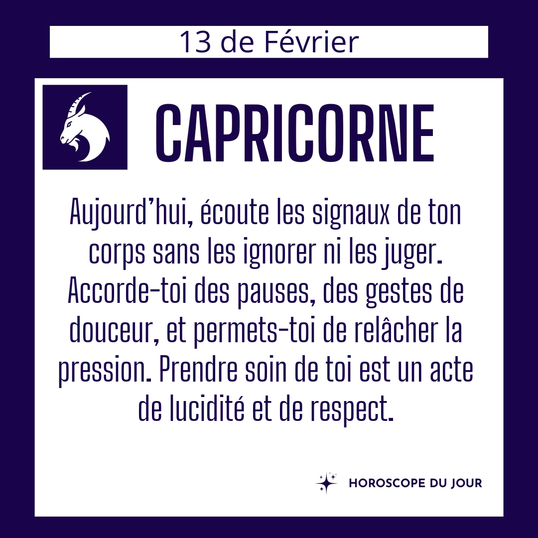 ♑ Capricorne aujourd'hui Vendredi 13 du Février
