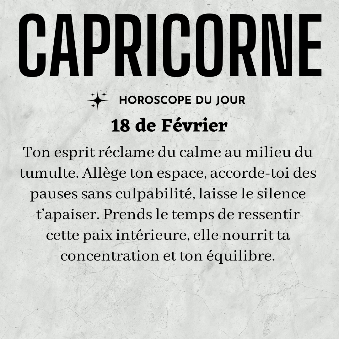 ♑ Capricorne aujourd'hui Mercredi 18 du Février