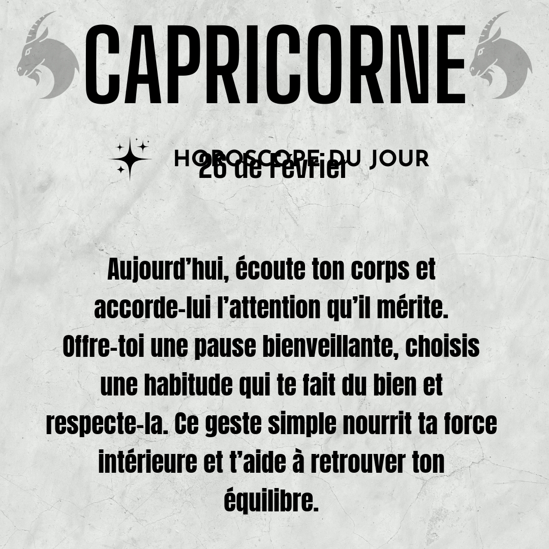 ♑ Capricorne aujourd'hui Jeudi 26 du Février