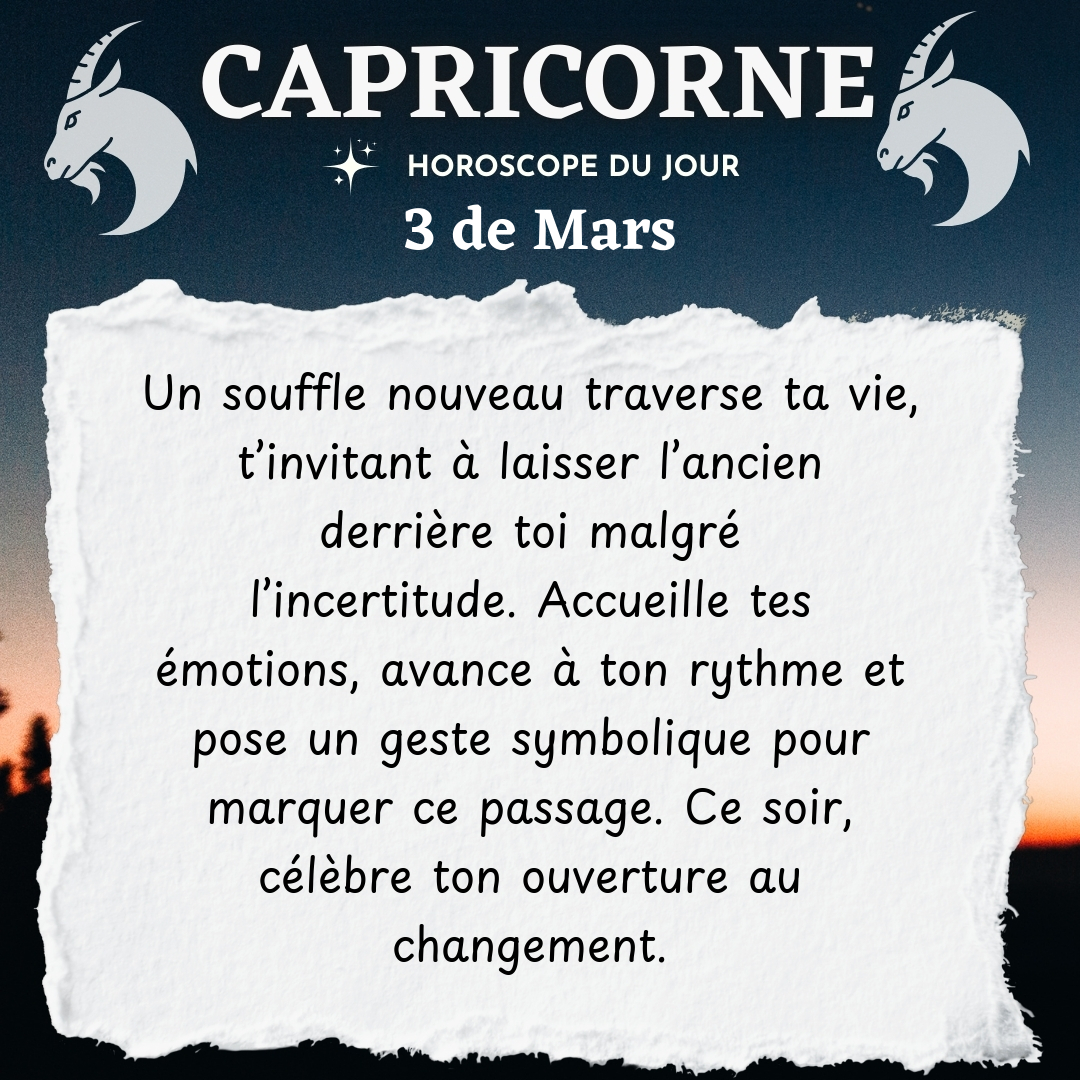 ♑ Capricorne aujourd'hui Mardi 3 du Mars