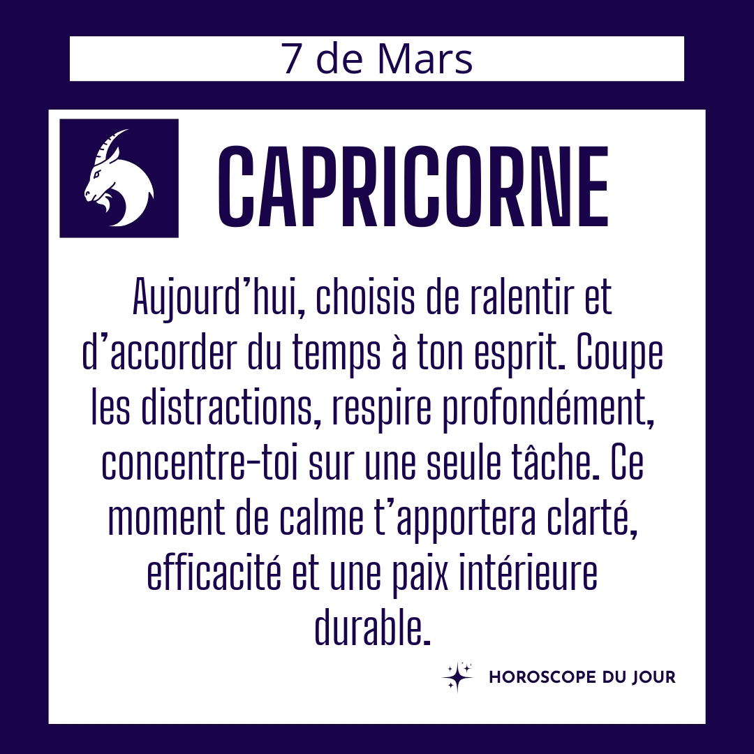 ♑ Capricorne aujourd'hui Samedi 7 du Mars