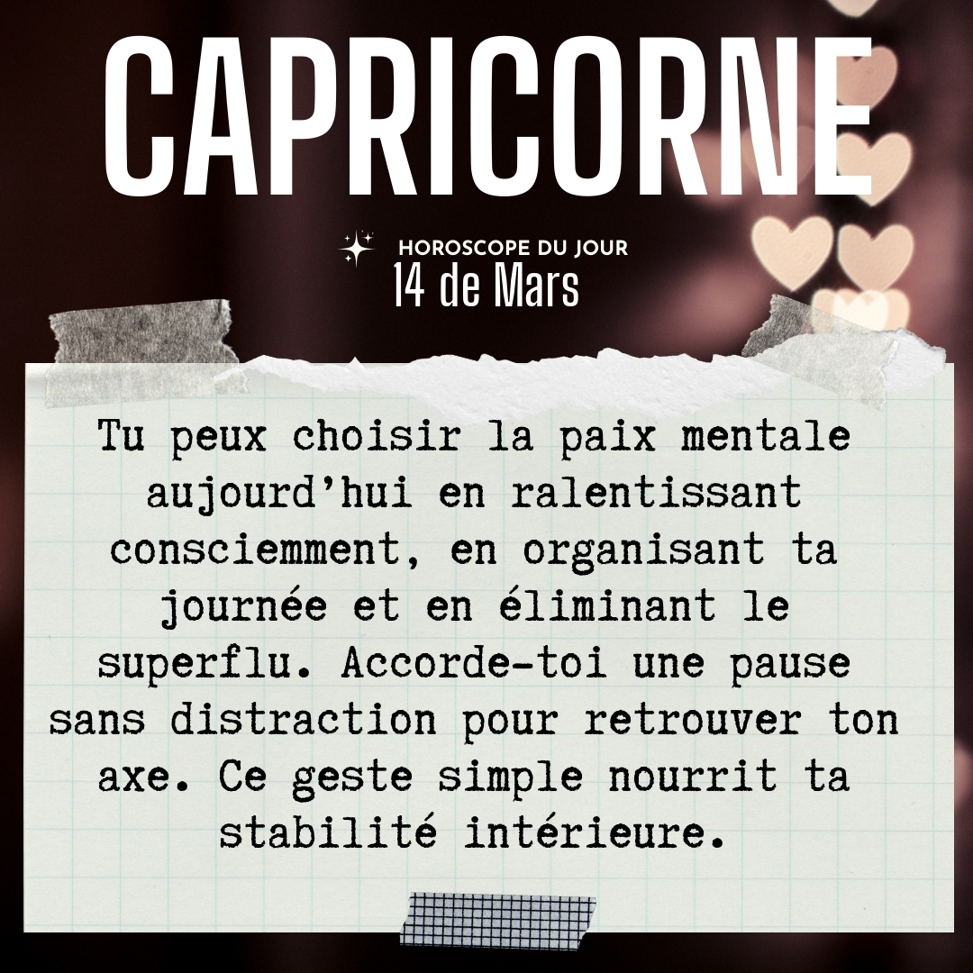 ♑ Capricorne aujourd'hui Samedi 14 du Mars