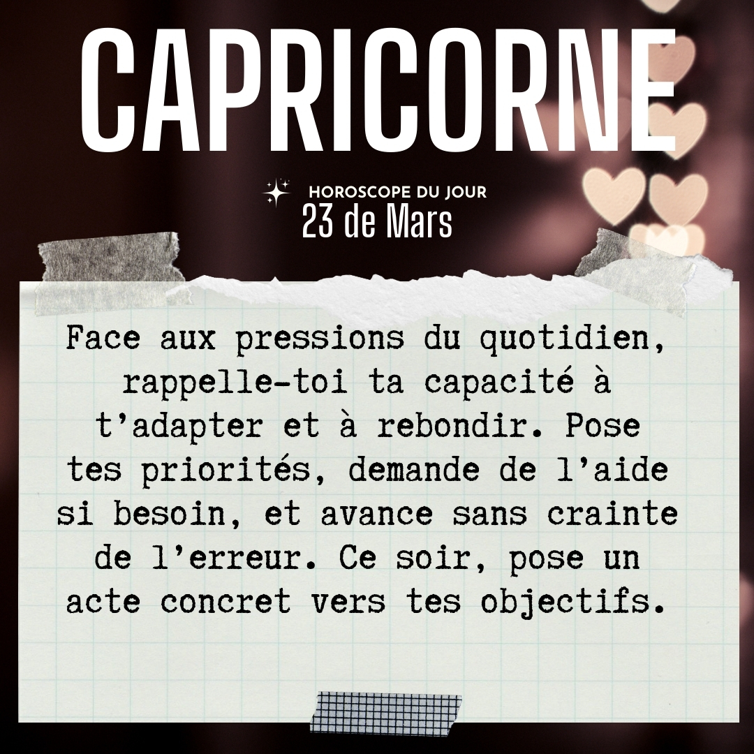 ♑ Capricorne aujourd'hui Lundi 23 du Mars