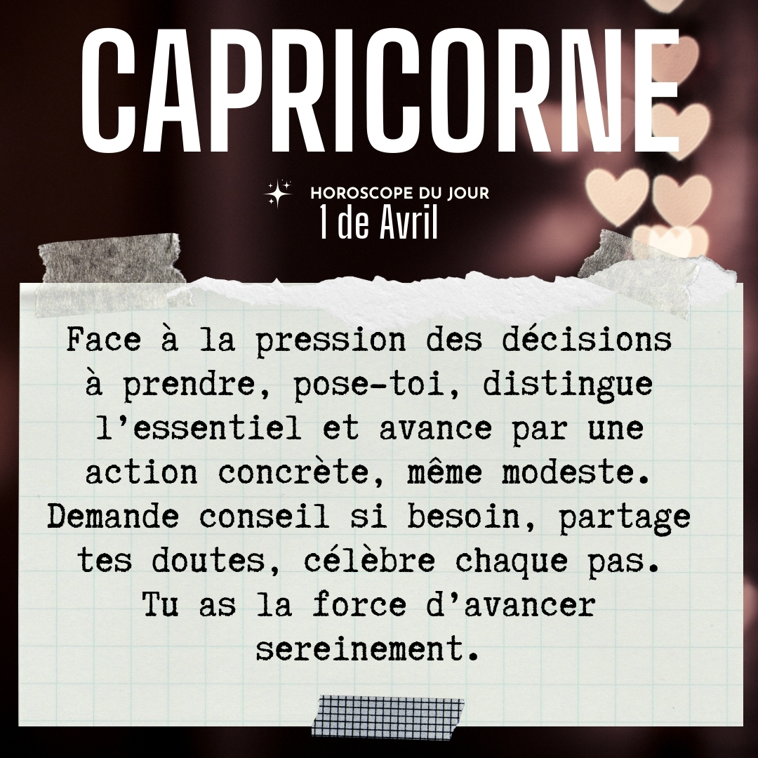 ♑ Capricorne aujourd'hui Mercredi 1er Avril