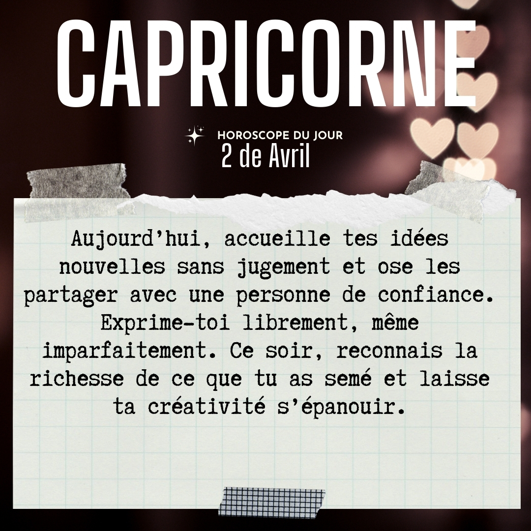 ♑ Capricorne aujourd'hui Jeudi 2 Avril