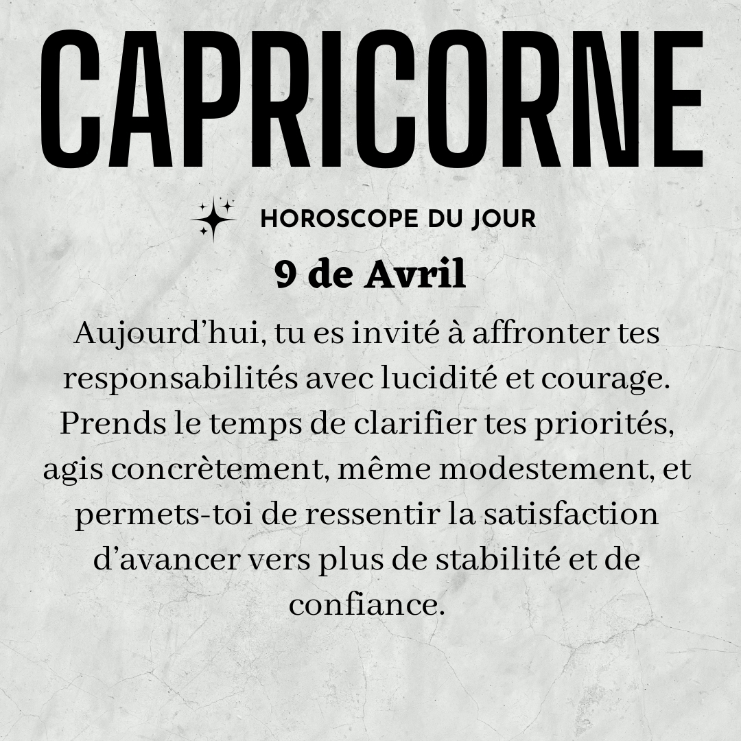 ♑ Capricorne aujourd'hui Jeudi 9 Avril