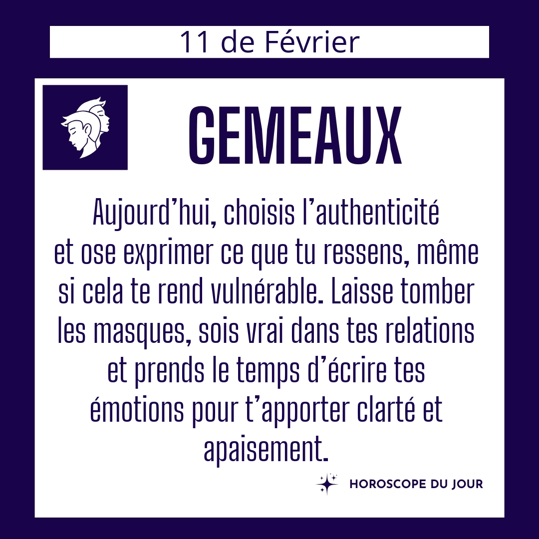 ♊ Gémeaux aujourd'hui Mercredi 11 du Février
