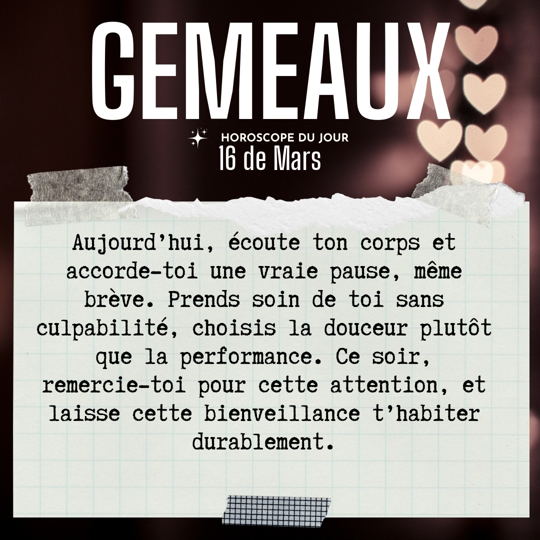 ♊ Gémeaux aujourd'hui Lundi 16 du Mars