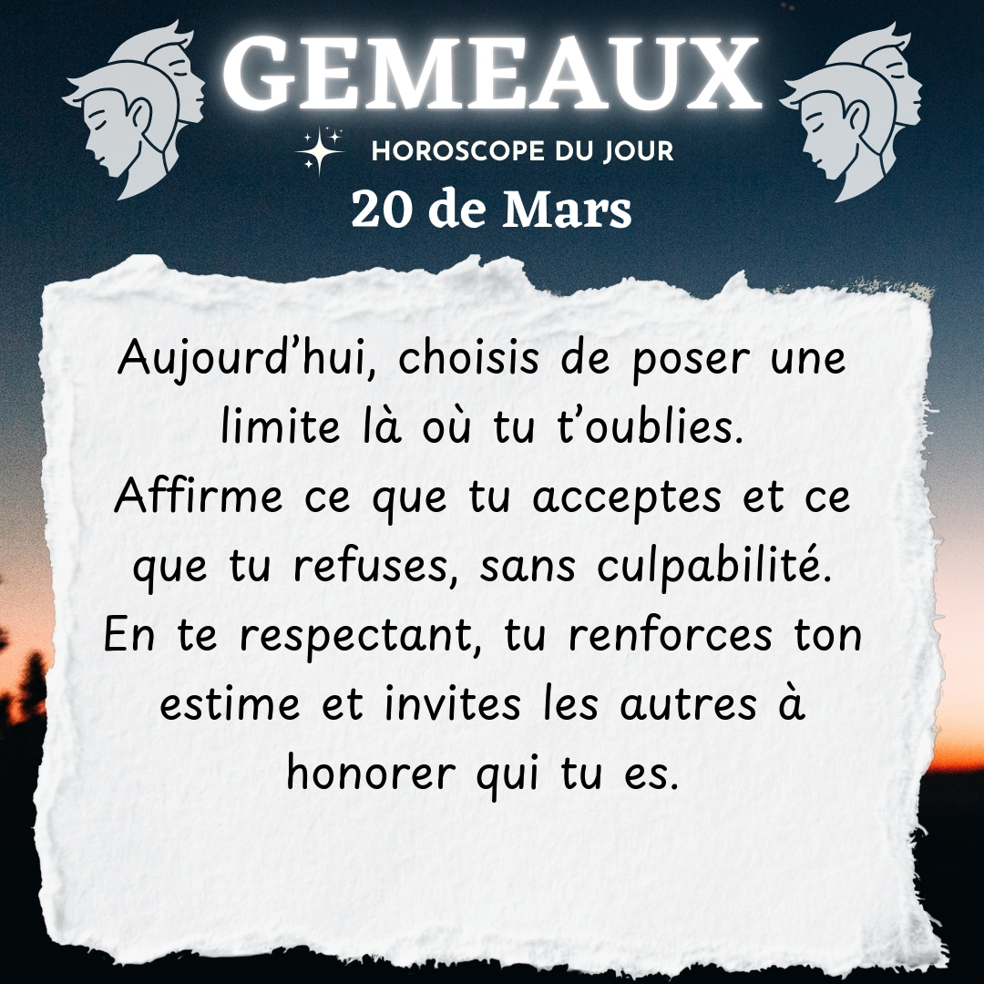 ♊ Gémeaux aujourd'hui Vendredi 20 du Mars