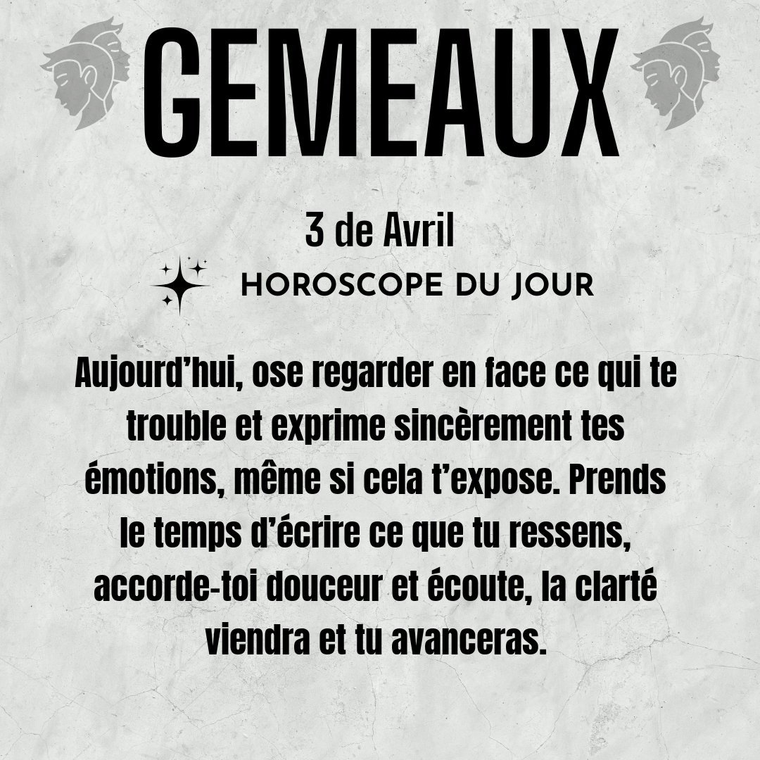 ♊ Gémeaux aujourd'hui Vendredi 3 Avril