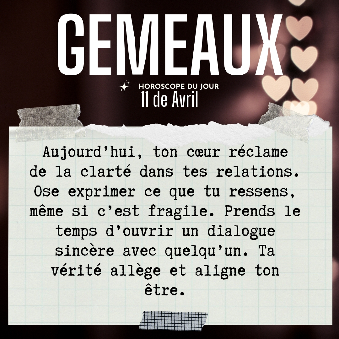 ♊ Gémeaux aujourd'hui Samedi 11 Avril