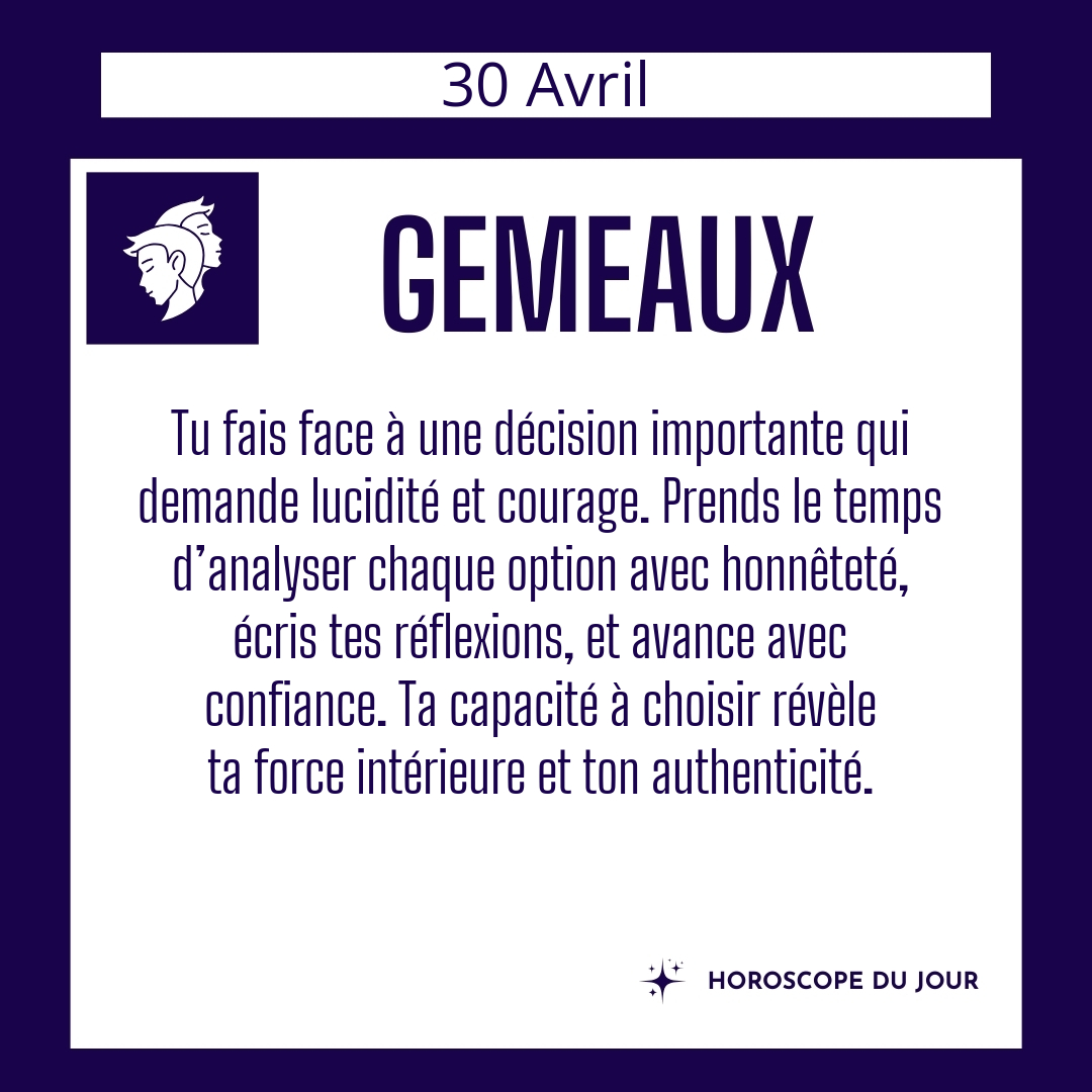 ♊ Gémeaux aujourd'hui Jeudi 30 Avril