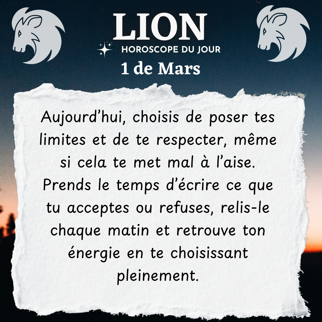 ♌ Lion aujourd'hui Dimanche 1 du Mars
